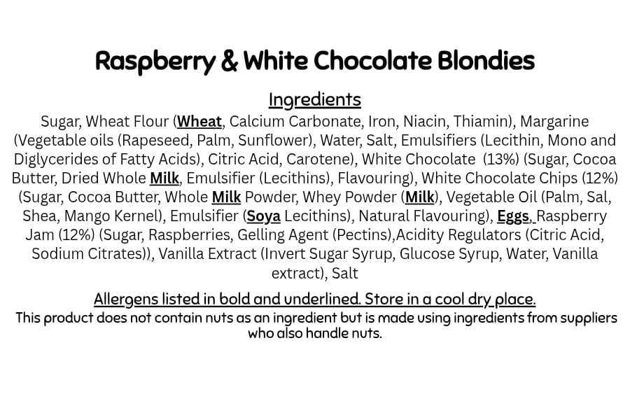 See ingredients image for full list of allergens. (contains milk, wheat, soya, eggs)